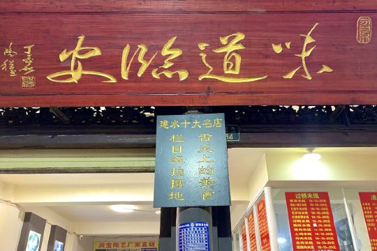 建水豆腐(央视舌尖) ~ 全城有上百口古井,而所有的豆腐作坊用水却全部取自“大板井”(溥博泉) 玉米粒是食客买单的唯一凭证,据说已延用了数百年[呲牙],不过烤豆腐真的不太好吃,太干,要配点汤汤水水的东西一起吃,确实顶饱。 味道临安这一家据说上过《舌尖》。