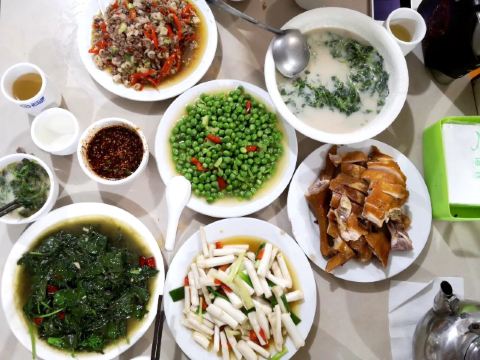 草芽米线,红烧牛肉米线,带皮小黄牛肉清汤米线,建水豆腐,烤红薯,凉拌草芽,烤豆腐,木瓜水,烤藕粑粑,玫瑰冰粉,烤五花肉