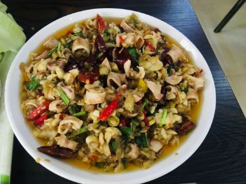 生菜包鱼,黄金吐司,舂鸡脚,油炝鱿鱼,油炝心管,油呛洋芋,凉拌米干,臭牛皮,干巴炒凉粉,油淋心管,炸鸡翅,菜包鱼