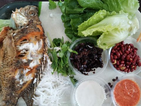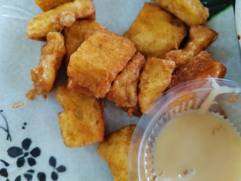 来西双版纳旅游,搜索发现这家杨杨小吃店,跟着导航来到小店,说实话不太好找。运气不错,五点到店,还有吃的,据说每天下午需要预约,我们吃饭时候好多没有预约的无奈离开。 [环境]小店在居民区胡同内,不太好找,跟着导航到地方看路边的指示牌即可找到。 [服务]服务热情,老板特别热情,吃饭这天是端午节,老板特意给每桌发了粽子,特别感动,老板看我们生菜快吃完了,特意询问是否再来点生菜,又给了一大份。 |菜包鱼^第一次吃这样的,星光夜市到处都是菜包鱼,因为感觉不太好没有尝试,这种鱼没有小刺,用生菜包起来吃着挺不错的 |油炝心管^这个菜说实话第一次见,第一次吃,味道挺不错的,心管吃着嚼劲十足,主要我不吃姜,需要把姜剥开,不然吃着更舒服 |黄金吐司^这个黄金吐司完全颠覆我的想象,我以为没有什么特别的,但是吃到嘴里完全不同,推荐,趁热吃。 |舂黄瓜^和我那里的凉拌黄瓜基本上一样,用的料不同,更酸辣。 整体来说,这顿饭吃的特别满意,套餐性价比高,以后有机会来版纳还会再次来。
