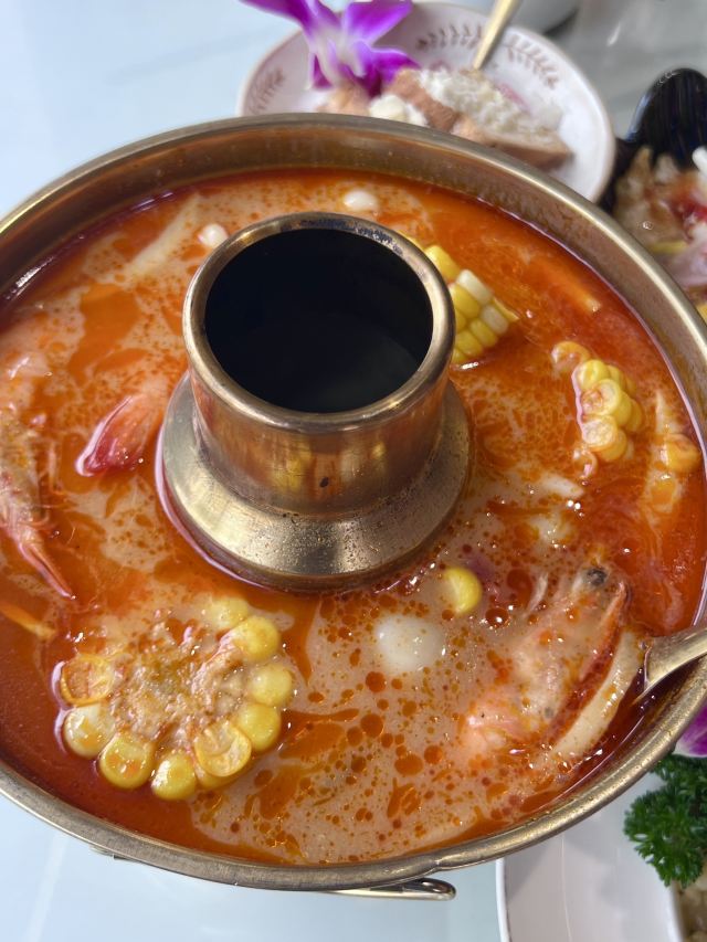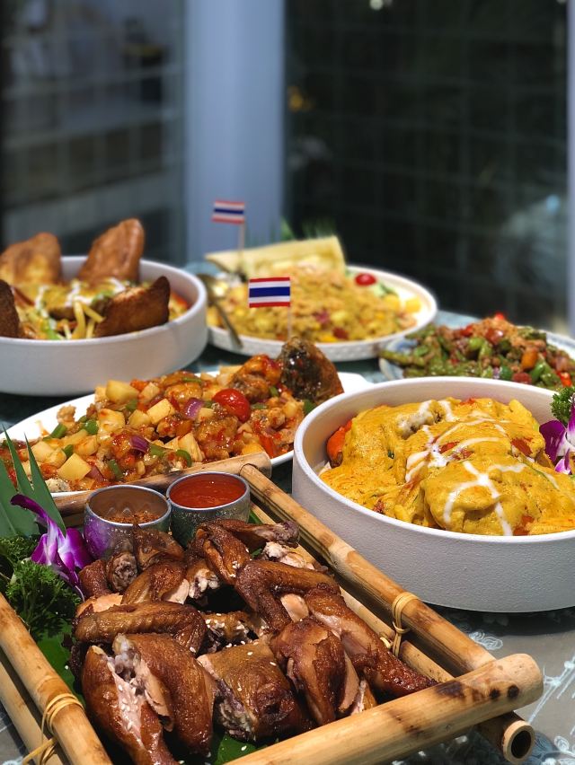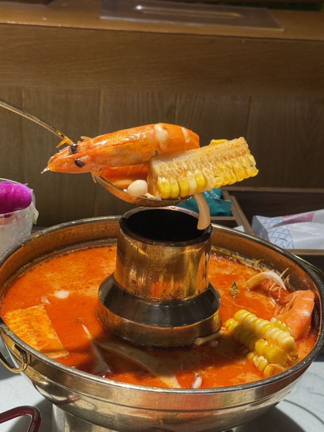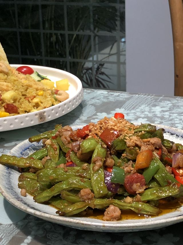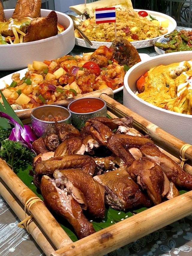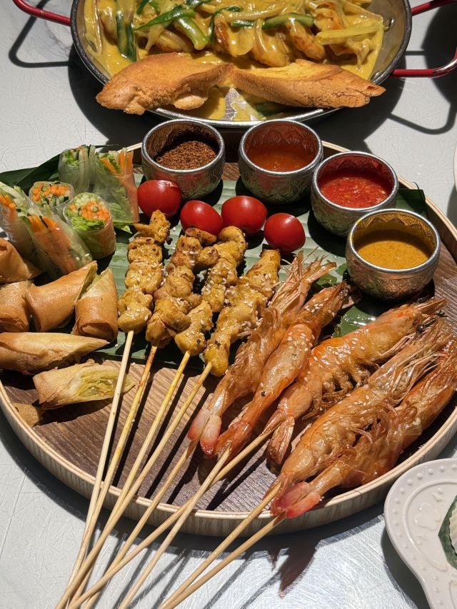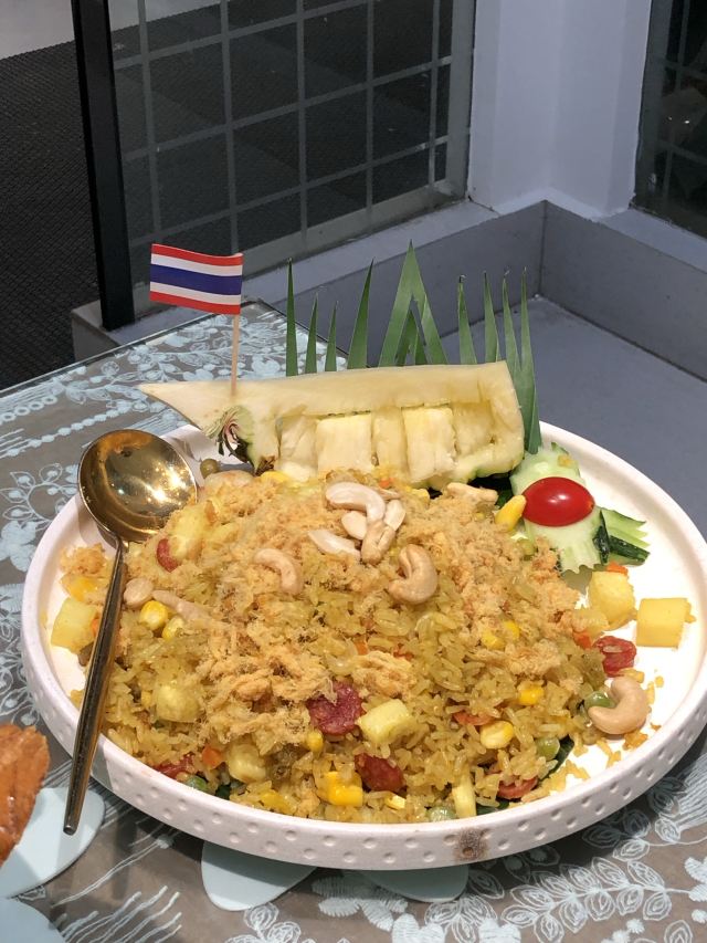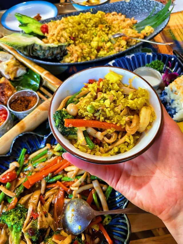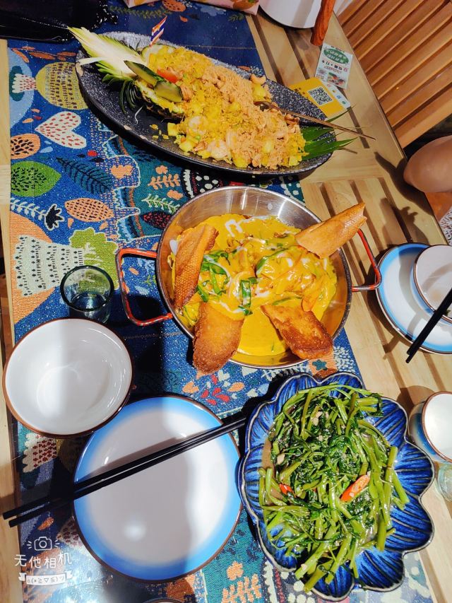 咖喱皇炒蟹,海鲜菠萝炒饭,脆皮小五花,招牌咖喱虾,泰式冬阴功汤,老挝舂荷包蛋