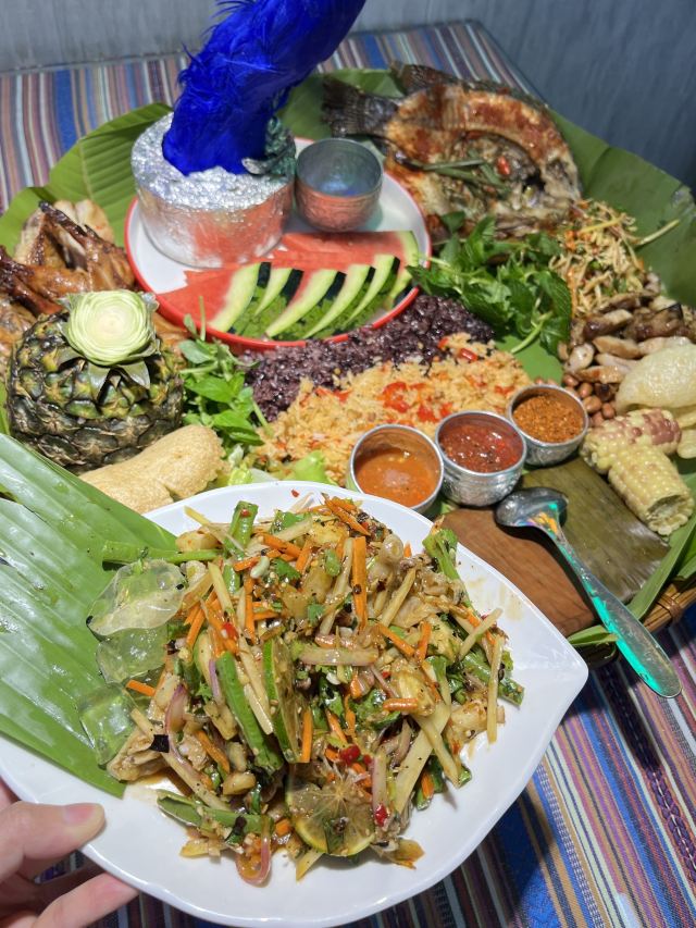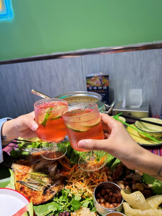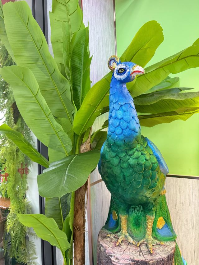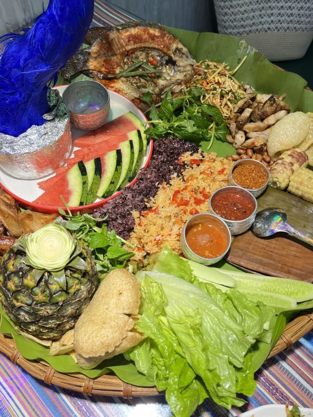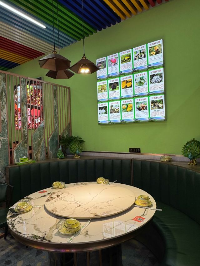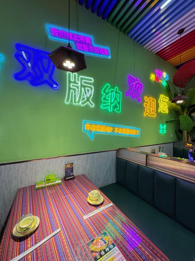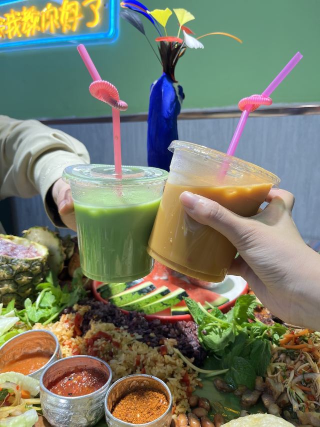 一上桌,孔雀造型的摆盘便惊艳众人。五彩斑斓的糯米饭如孔雀华羽般绚丽,各类热带水果簇拥周边,新鲜欲滴散发着诱人果香。傣家烤鱼表皮金黄酥脆,内里鱼肉鲜嫩多汁,香料的独特气息完美融入其中。还有那香茅草烤鸡,鸡肉紧实,香茅草的清香萦绕舌尖,令人回味无穷。 精致的竹编餐具,充满浓郁傣家风情。餐厅环境雅致,绿植环绕,轻柔的傣族音乐若有若无地飘荡,仿佛将食客带入神秘的热带雨林。 服务人员身着传统服饰,热情地介绍每一道菜品,贴心周到。在这里,品尝孔雀宴不仅是味蕾的享受,更是一场视觉与文化的盛宴,深度领略西双版纳独特的美食魅力,每一口都满是惊喜与满足。