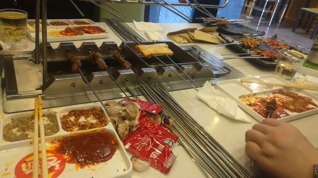 口味非常喜欢,我在延边生活好几年,特别喜欢长春这个白玉串城口味儿,跟延吉特别接近。风格也特别像,而且是自己考的。眼睛看着那种碳红红的感觉。而且串儿的味道和料的味道都非常好,消费还不高,还有冰川啤酒。吃延边的考出必须配延边冰川啤酒。