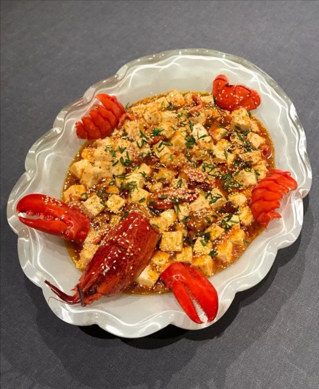 波士顿龙虾麻婆豆腐,玻璃脆皮乳鸽,石窝海胆豆腐,金汤小米扣海参,空心葱油饼,龙虾汤猫耳面,鱼头佛跳墙,龙虾汤猫儿面,椰皇炖老鸽,金枕榴莲酥,小米海参粥,雪岭雄峰,擂辣椒海参小炒肉,杨枝甘露,蟹肉龙虾汤包,京参園红烧肉,鲍鱼烧鹅,脆爽花胶