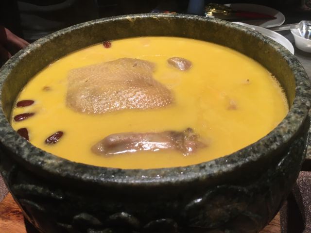 a****17湖西路上面一家粤菜馆,长春算是很高端的店。主厨获得过橄榄画报奖项,年轻有为,还特别帅气,主厨堂炒可以说是非常惊喜。 粤菜乳鸽肯定是不能少的,这家主打是玻璃脆皮乳鸽,皮脆脆的太好吃。 京参园烧鹅是厨师现切的,肥瘦适中。 脆皮鸡上面有一层芝麻,吃起来特别香。 墨脱石锅滋补松茸花胶鸡这道菜鸡汤味浓,堂制菜品,墨脱石锅是主厨从西藏采购回来的。 这顿饭最奢侈的是鱼头佛跳墙,里面的海参是京参园自己的海洋牧场打捞上来的,品质保障。 服务也非常到位,停车有工作人员指引,从进门到落座一直有工作人员带路,及时更换骨碟。 总体来说,长春如果有朝一日可以评定黑珍珠,这家店一定榜上有名。