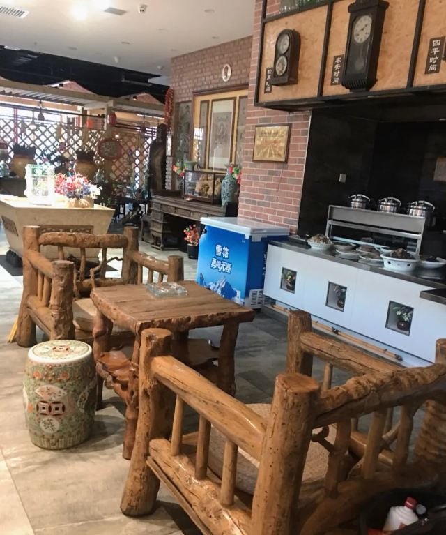 生意火爆的东北菜馆,大厅里贴满了上世纪60、70年代的大字报、宣传画,包房都以“屯”命名,服务员穿着老式服装,整个一旧农村闹革命的感觉。而且吃的也是地道的农家菜,小鸡炖蘑菇、排骨炖豆角、一锅出都很入味,是体验各种东北味儿的好去处。