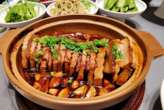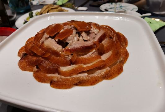 最近由于修地铁,门票很难找到停车位的,不过的后院还是有个免费停车场可以停车的。 酒店的环境很不错,就是供暖太好了,所以大家去的时候一定不要穿太多,真是热啊! |酥不腻烤鸭^他家的特色菜,一定要尝尝,做得很精致,有好几吃。一般烤鸭店的配料碟里都有白砂糖,他家放的是跳跳糖,还有好几种口味。烤鸭烤得中规中矩,味道上没有太出彩的地方。鸭胸的脆皮单独切成薄片,按照鹅肝的吃法,加上面包,配上店里自制的酱料,一口下去,酥脆多汁的感觉还是很不错的。玉兰叶鸭松以前没吃过,尝个鲜。鸭架汤熬的火候不错,咸淡也适中。 |芥末鸭掌^这是传统吃烤鸭的必点菜之一。 骨头剔的很干净,就是感觉辣劲儿不够。 |石锅肉汁芋头^味道还可以,只是五花肉片有些薄,芋头切得稍有些厚,这样肉汤的味道就没有完全被芋头吸收。 整体来看,他家上菜速度很快。菜品的口味还算不错,基本没有趟雷的菜。