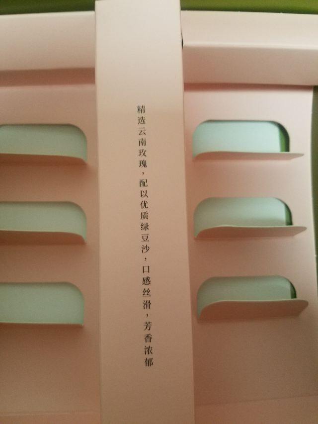 玫瑰绿豆饼39元一盒子,一共有八块。云南的玫瑰,味道非常好。包装非常精巧。纸盒子也很漂亮。吃完了可以做收纳盒。存会员卡还有赠送。