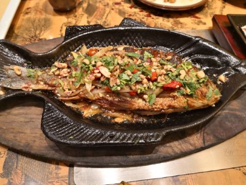 东北出差,到长春当然要体验下当地的特色餐馆了。搜了一下,东北烧烤比较火,当地一家叫武状元的店铺非常货,经常是排队无限。从酒店打车过去不远,店铺在一条不是很起眼的小路上,周边饭店不少,但是都没有武状元这家有排队的样子。2个人抽了个号,结果一排就是1个来小时,门口堆放着小吃和水果,方便消磨时间。店铺整体规划的比较紧凑,中间台子上人坐满了不方便进出,靠窗是大桌,适合人多用,但是脱鞋上去的,所以部分不讲究的朋友还是产生异味。第一次来,看着宣传评论样样数数都点了些,除了烤鱼外,基本都很不错,因为鱼的小细刺太多了,不怎么会吃,卡了好几次。价位不是很贵,挺实惠的一家店铺。
