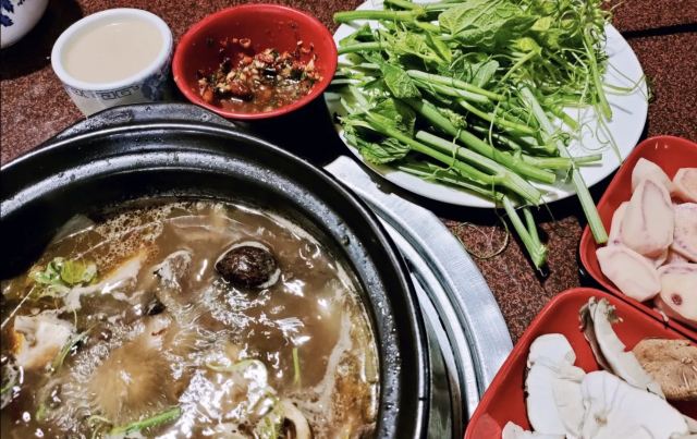 晚风轻拥的海岸牦牛肉火锅肉质鲜嫩,毫无腥膻,配上时令蔬菜,真是寒冷天气里的不二之选。