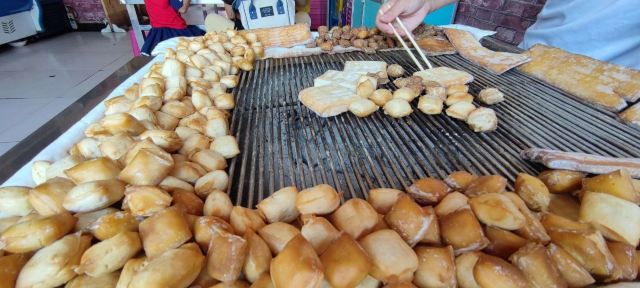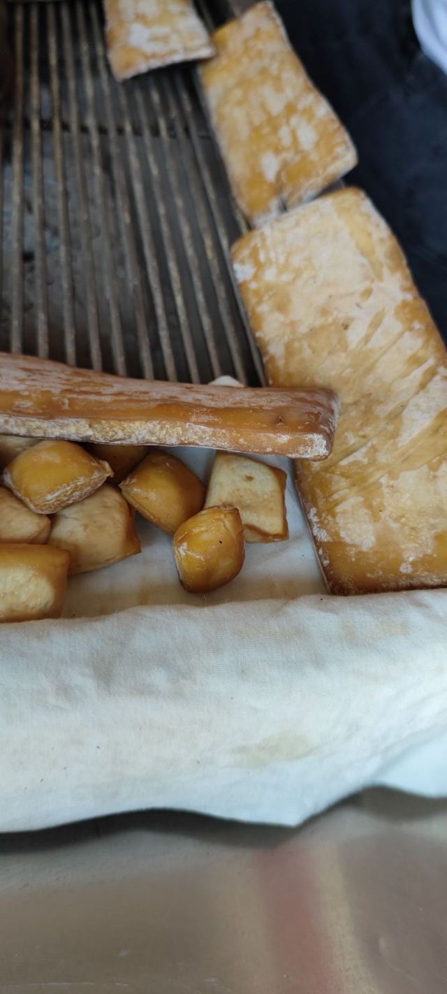 到了石屏当然要品尝一下烤豆腐。这家店在文庙附近。把他家的三种豆腐都点了。等了大约一刻钟终于烤好了,长条的大块豆腐是石屏特色,好吃。小块的软的也好吃,小块的干豆腐不好吃。