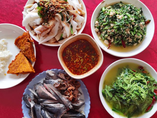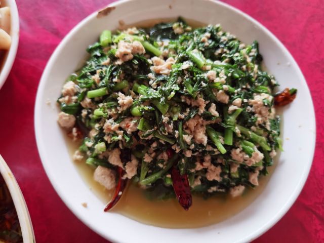 Helen晓世界《晓世界》国内篇📍云南 来元谋土林玩,只住一晚上,只有一餐饭的机会,所以肯定想尝试一下当地菜,查了一下好像凉鸡算是当地特色,那就选它吧。 本来以为是家很小的小吃店,但到了门口才发现,打着百年老店的招牌,可是网上的评论好像也就中等,一开始比较奇怪,等吃完之后大概明白为什么了。本地人可能用点评的不多,所以评分的很多是外地人,但|凉鸡^吃起来有股药味,又是进过冰箱的,口感比较硬,肉也比较柴,确实外地人可能会吃不惯,比如我就是。讲真实在找不出任何可以夸赞的地方,与上海的白斩鸡,海南的文昌鸡,四川的口水鸡等等实在差太多了,所以单就这个鸡评分的话恐怕我也就只能给个两星。不过看其他桌的当地人吃的还是津津有味的,所以说饮食这个东西有时候真的就是一个习惯口味问题,没有绝对的好与坏。 除了对鸡肉比较失望,其他菜品倒还过得去,有不少特色的野菜,还蛮有意思的,比如|沙松尖^就是第一次见到,吃起来还挺清爽的。|凉粉^味道也还不错,里面是两种原料,就是分量太大了,两个人吃不完。感觉最好吃的是|臭豆腐炒茼蒿^,虽然叫臭豆腐,实际上吃起来一点也不臭,介于老豆腐跟嫩豆腐之间的口感,茼蒿嫩嫩的,搭配起来很下饭。 服务方面谈不上多热情,但还算周到,一开始在后厨明档点餐,阿姨也会推荐比较合适的份量跟特色野菜。总的来说,可以一试。