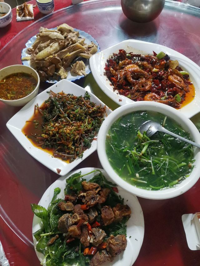 《晓世界》国内篇📍云南 来元谋土林玩,只住一晚上,只有一餐饭的机会,所以肯定想尝试一下当地菜,查了一下好像凉鸡算是当地特色,那就选它吧。 本来以为是家很小的小吃店,但到了门口才发现,打着百年老店的招牌,可是网上的评论好像也就中等,一开始比较奇怪,等吃完之后大概明白为什么了。本地人可能用点评的不多,所以评分的很多是外地人,但|凉鸡^吃起来有股药味,又是进过冰箱的,口感比较硬,肉也比较柴,确实外地人可能会吃不惯,比如我就是。讲真实在找不出任何可以夸赞的地方,与上海的白斩鸡,海南的文昌鸡,四川的口水鸡等等实在差太多了,所以单就这个鸡评分的话恐怕我也就只能给个两星。不过看其他桌的当地人吃的还是津津有味的,所以说饮食这个东西有时候真的就是一个习惯口味问题,没有绝对的好与坏。 除了对鸡肉比较失望,其他菜品倒还过得去,有不少特色的野菜,还蛮有意思的,比如|沙松尖^就是第一次见到,吃起来还挺清爽的。|凉粉^味道也还不错,里面是两种原料,就是分量太大了,两个人吃不完。感觉最好吃的是|臭豆腐炒茼蒿^,虽然叫臭豆腐,实际上吃起来一点也不臭,介于老豆腐跟嫩豆腐之间的口感,茼蒿嫩嫩的,搭配起来很下饭。 服务方面谈不上多热情,但还算周到,一开始在后厨明档点餐,阿姨也会推荐比较合适的份量跟特色野菜。总的来说,可以一试。