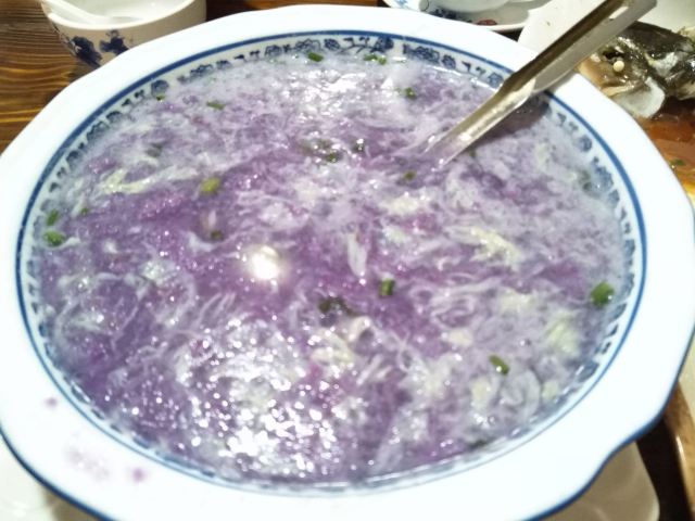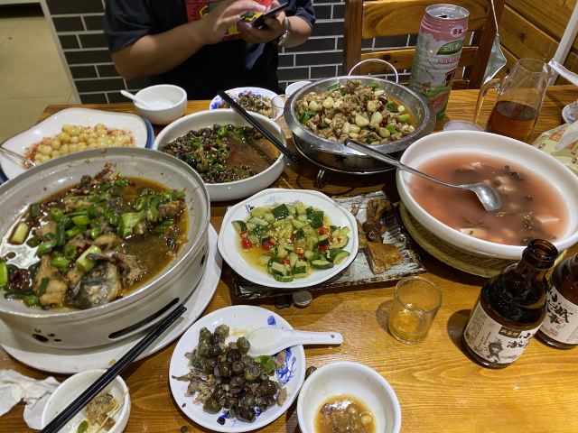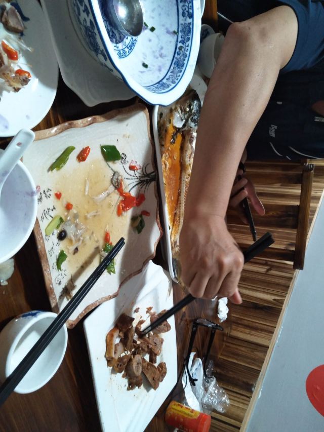 Xia Mei Ren Jia Local Restaurant (Historical Culture Dining Resort Branch)开车从景区北门过来十二点半左右到,停车方便——因为路旁店门前随便停 号称人气第一,食客远没想象的那么多,估计是过了当地的饭点。点完菜就有了个小桌,点了三菜一汤,份量超大。 红眼鱼应是本地特产,好多餐馆都有,俩人一致同意必吃的,味道确实没失望;熏鹅那位说是本店招牌要试但味道一般剩了不少,烩杂菌是我点的最先光盘,一大盆紫山药蛋汤当做主食也见底了