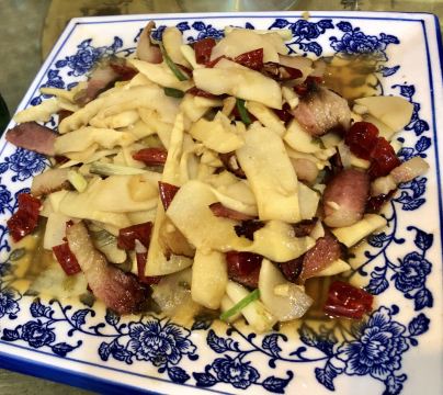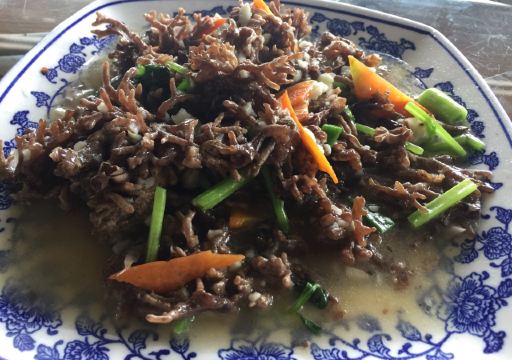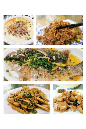 不知道怎么上的第一排行榜~难道是我太挑剔了~不可能啊。 看排行榜选择的一家当地菜馆,顶着烈日步行前往的啊,为了吃才一行也是拼了。 环境:简简单单的土菜馆装修,店里还算干净卫生都是大圆桌没有小桌子可以选择。 |红菇炖蛋^:用当地特产红菇沫蒸的鸡蛋羹,味道鲜味用来拌饭味道不错。 |雷笋炒酸菜^:感觉是腌过一样,笋是酸的味道,有点怪怪的。 |清蒸红眼睛^:上菜的时候介绍说鱼鳞也是可以吃的,不过没有尝试,鱼肉还是挺嫩的可惜没有入味个人觉得有点腥。 |酸辣土豆丝^:味道还不错~应该是凉拌的,土豆丝特别脆,就是这量有点迷你啊!可能和价钱有关系量少也可以理解了。 |茶香扁肉^:这个不错,全场最佳的一道油炸食品,油炸的馄饨香香脆脆,大朋友和小朋友都很喜欢😍。 |野生猫爪菇:看看就OK了~~~~~~~ 服务: 服务一般般吧!