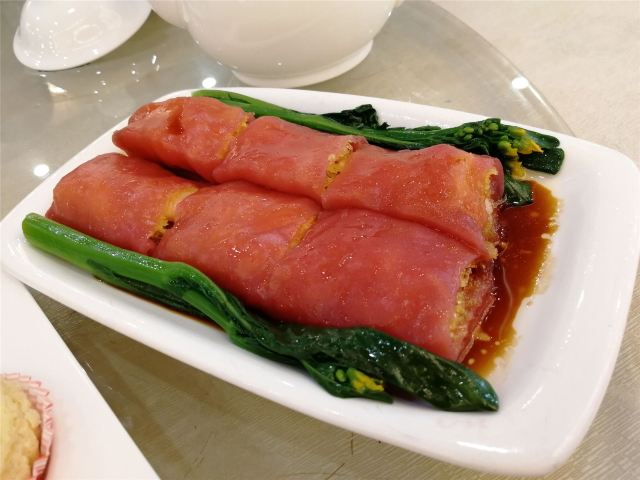 在山水商务酒店里,这里背靠大型新社区山水华府,附近又是韶州公园,很多新楼盘即将建成,形成很庞大的餐饮需求。休息日9点多前来喝茶,大厅已座无虚席,后来由于要划出半个厅来举办午宴,外面更是要等位了。可以举办宴会的餐厅环境肯定有一定档次,卫生条件也好。菜单价格虽然有点贵,但对比广州简直实惠了,菜品份量也比较多,不过口味中规中矩吧,好吃,不过并没有感觉有出彩的地方。