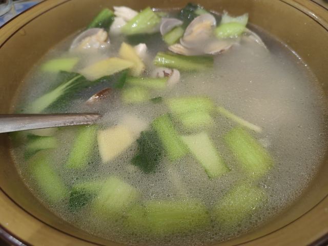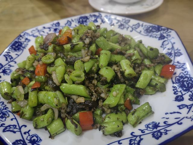 旅游度假路过看到人不太多就随机选择了这家吃晚饭,看着墙上的菜牌点了两菜一汤,量都还挺足的。茄子肉沫,炒豆角,蛤蜊青菜汤,都算是家常菜吧,味道还可以,挺下饭的。正好配个清淡一点的汤,特别是汤里的配菜也不少,所以还蛮良心价的。
