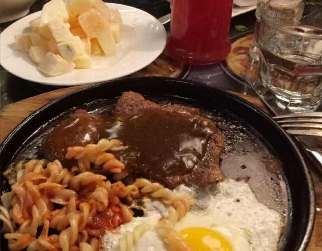 黑椒牛排,牛奶咖啡,主厨牛排,鸡尖,骨牛排,美式烧烤披萨,香芋冰淇淋,炸薯条,田园蔬菜沙拉,灶火饭,香芋奶茶,罗宋汤,披萨,水果沙拉,T骨牛排