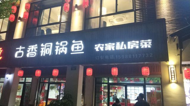 D了个Y食在这里# 位于淳安水下狮城景区 离安麓酒店很近 从芹川回来的路上特地转过来觅食 店家主打农家菜 特色是铜锅鱼 来了千岛湖 不吃鱼没道理 但是也不能天天酒店鱼头汤不是 今儿正好出来换个地方 换种吃法 果然 没有失望 |古香铜锅鱼^有点类似水煮鱼的感觉 整条鱼下去 配以小食蔬菜 终于 不用只吃鱼头了 哈哈哈 所以好东西也不能天天吃 等到审美疲劳 日久生厌就不好了 鱼肉很嫩 汤汁微辣 调和的很好 |酱爆螺丝^农家菜就要点农家菜啊 最接地气的一道菜 适合小口慢嗦 配合小口慢饮 那就无敌畅快了 吃螺丝有一种奇特的感觉 懂的自然懂哈 |野葱干菜玉米饼^当地又一农家特色菜 平时都不怎么吃的到 要趁热 一片片金黄的 咬下去嘎嘣脆 口感还不错 老板娘是个爽快人 看样子估摸着有了身孕 还送了一盆跟馒头一样的东西过来 说是这里有喜事的时候都吃这个 沾点喜气 餐间入入续续进来不少人 好些都是昨天吃过的回头客 可见这里口味 性价比都不错 他家有套餐 推荐尝试