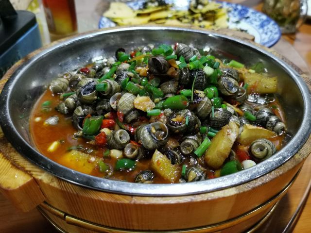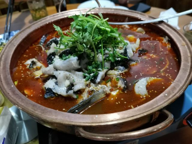 酒店过来开车5分钟不到,店里挺整洁的。主要来吃鱼,应小朋友要求选择了不辣。一大锅浓汤鱼,鱼汤鲜美,鱼肉鲜嫩;野葱干菜玉米饼香脆可口,店家自己做的农家豆腐十分入味。老板非常客气,还送上自家的酒酿馒头,香味十足!强烈推荐要来试试哦!