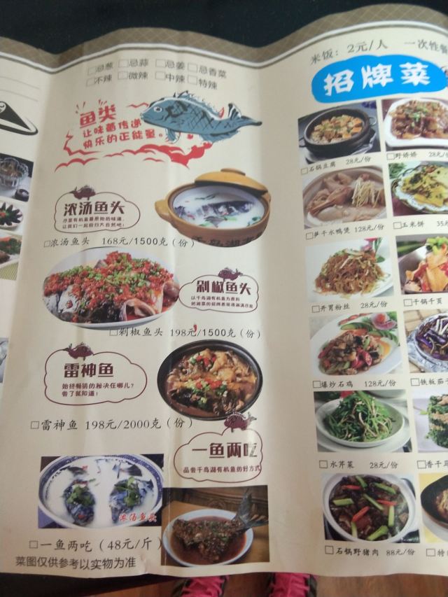 酱爆螺蛳,千岛湖浓汤鱼头,红烧有机鱼尾,干菜玉米饼,千岛野娇娇,白斩鸡,清蒸野生鳗鱼,火爆腰花,千岛湖有机鱼头,红烧鱼尾,盐水虾,葱油河蚌,鱼泡