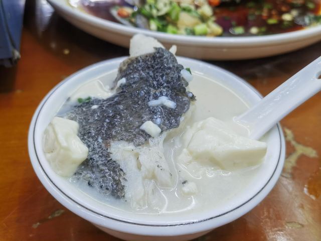 到了千岛湖当然要吃鱼头汤啦,从天屿山回来就选了酒店附近的这话家全乐鱼馆,生意很好的,老板娘很热情,这家回头客也很多! 这家还是正宗淳牌有机鱼,真的是不一样,大鱼头汤不加盐的原汁原味的鲜美,喝了好几碗满足了,鱼肉鲜嫩美味,份量很足哦!