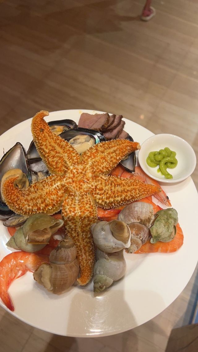 三文鱼,肉酱意面,白汤千岛湖有机鱼头,低温慢烤羊排,雪菜肉丝面,小馄饨,单人希尔顿自助餐,三明治,三文鱼寿司饭,时令水果,羊肉卷,冬阴功汤,小龙虾,小火锅,羊排,牛肉卷