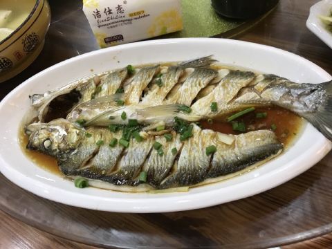 去张公洞玩,出来正好晚餐时间,这家店就在大门对面。客人挺多,进去正好饭点没位子,但是我们不想再去找其他店了,和店家商量,正好有预约的还没有来,于是位子让我们先坐了。点了个套餐,出来吃农家菜就喜欢吃套餐。4大1小8个菜,吃撑死我们了,小朋友特别喜欢乌米饭和鱼,我都喜欢。上菜速度还可以,就是因为人多,阿姨忘了给我们碗筷,提醒之后态度也很好。环境也干净,好几个包房,大堂里吸烟的人比较多,有点不舒服,可惜没有坐到门口的2桌,那里比较适合我们坐。
