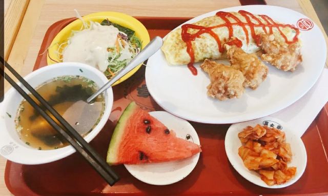 对于这种平价简餐一直是百姓的心头好 去的时候人挺多的 基本都坐满了 一个套餐下来主食菜汤小菜沙拉水果都有了 要了蛋包饭 还有三个炸鸡腿 非常好吃 还是以前的味道没有变哈哈哈哈 量也很够 绝对可以吃饱 推荐:蛋包饭套餐