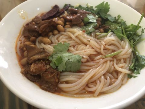 团了一张券,买了个肥肠粉,味道超好,还有小菜,土豆丝味道很好,跟着导航走过去呢,在一条大路的路口,医院斜对面,非常好找,店不大,老板很热情,牛肉粉味道也不错,有提供纸巾哦,上粉速度也很快,吃早饭简直完美了。