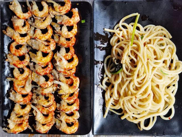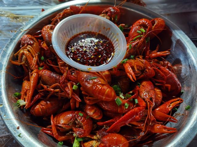 凉拌皮蛋,小龙虾汤吃,龙虾粉,烤茄子,煎饺,烤生蚝,香辣蟹,烤基围虾,卤猪尾,白灼虾,海鲜砂锅粥,米粉,油焖大虾