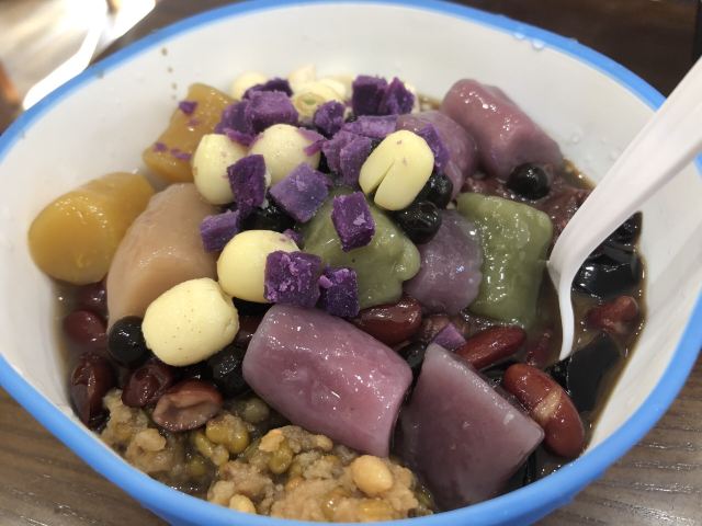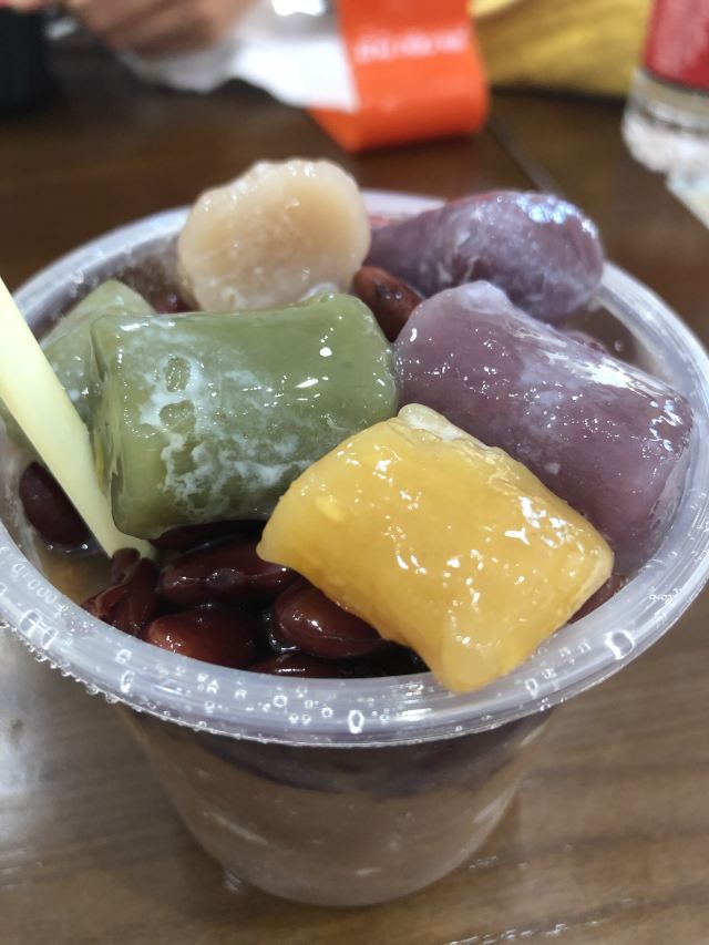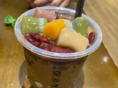 在溪步街还不到的街口,马路转角,要了一碗砂锅面,一杯大红豆芋圆冰,砂锅面里几片生菜,半片午餐肉和两个鹌鹑蛋,大红豆芋圆冰芋圆很好吃,有嚼劲,大红豆煮的太生,没煮爆皮,所以一点味道也没有,还是买正常红豆吧。