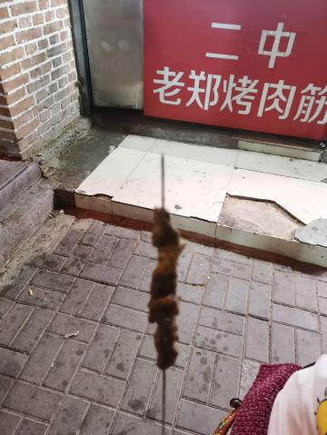 图片上的这家店是二中老郑烤肉筋(民富园)店。这家店的肉筋味道不错,地势也很好,就在小夜市边上。如果现在能有路边摊,喝个啤酒,吃个串,悠哉啊