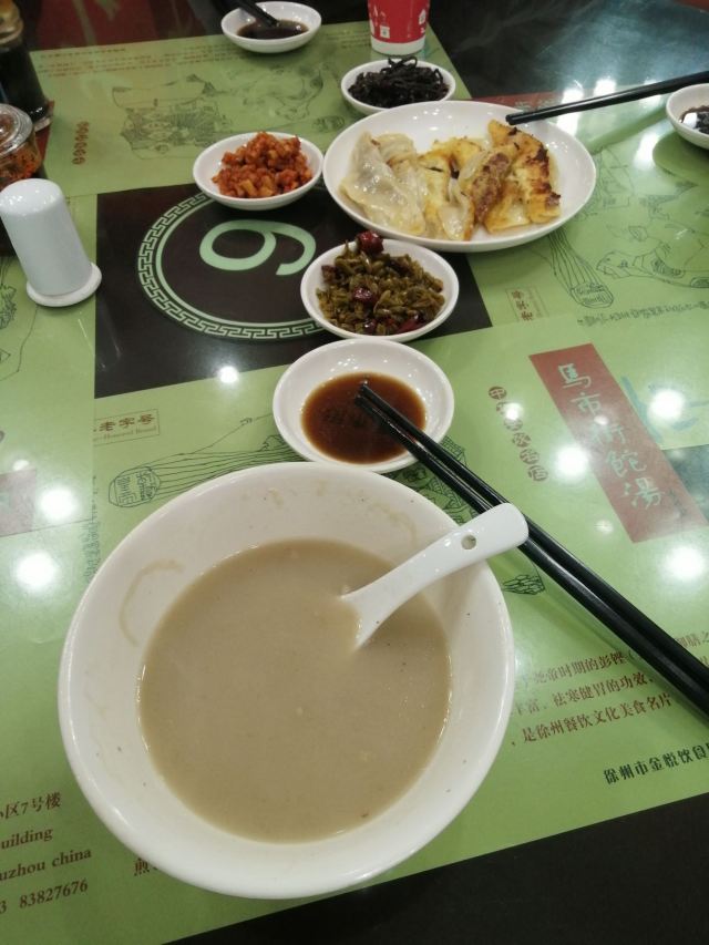 马市街的啥汤,早上5:30就开始有人排队了,生意好不好,看看照片。去一定要提前半小时,楼上的雅座人多的时候也要排队。味道不错,老徐州人也有很多人