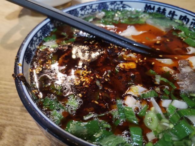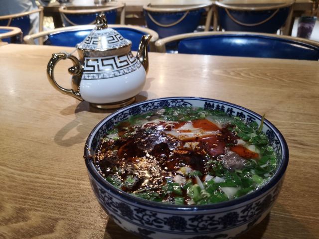 朋友之前来过兰州,推荐马有布拉面好吃,午饭时间所以来试一试。 就在中山桥的对面马路,很容易找,面条韧细,兰州拉面的标配再加几块萝卜片,习惯性走葱免辣,牛肉软香,感觉汤底与别家不同,多了点点姜味,好吃 ,不过青海酸奶真的好酸好酸,不过也全部吃掉了。