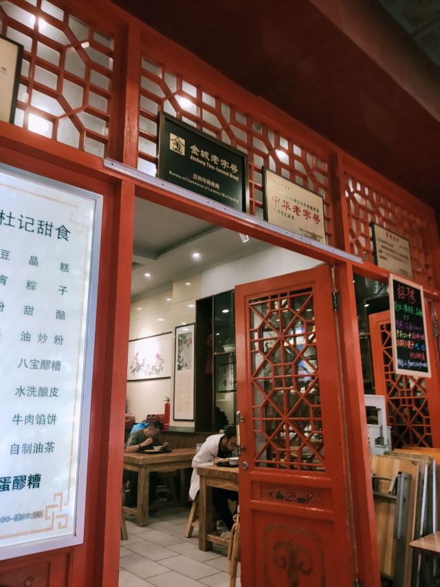 杜记甜食是当地的老牌甜品店,门面古色古香,里面灯光有些昏暗,来往的顾客络绎不绝。灰豆子、甜醅、热晶糕,都值得品尝,尤其是灰豆子煮的绵软香甜,口味极好。