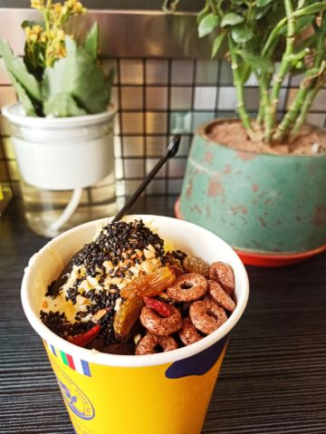 老牟家酸奶 一个在网上看见的特色酸奶店。 招牌是藏式酸奶。 装修非常独特,用料非常丰富。 好吃,是真的非常好吃。和我在老家喝的酸奶不一样吃进去带着甜味,里面的用料嚼进去非常脆 店长还问我好喝不 有wifi还可以充电 感觉是一个不错的酸奶店
