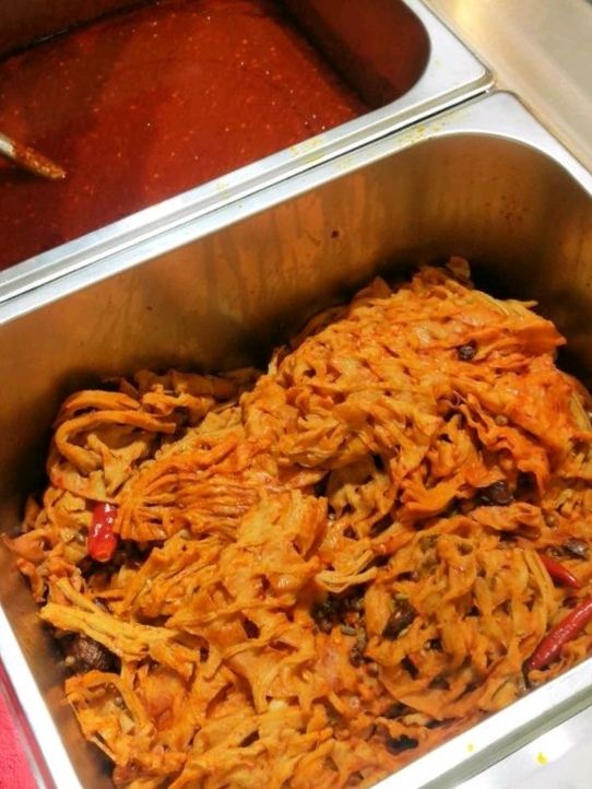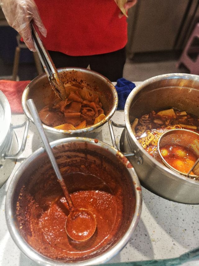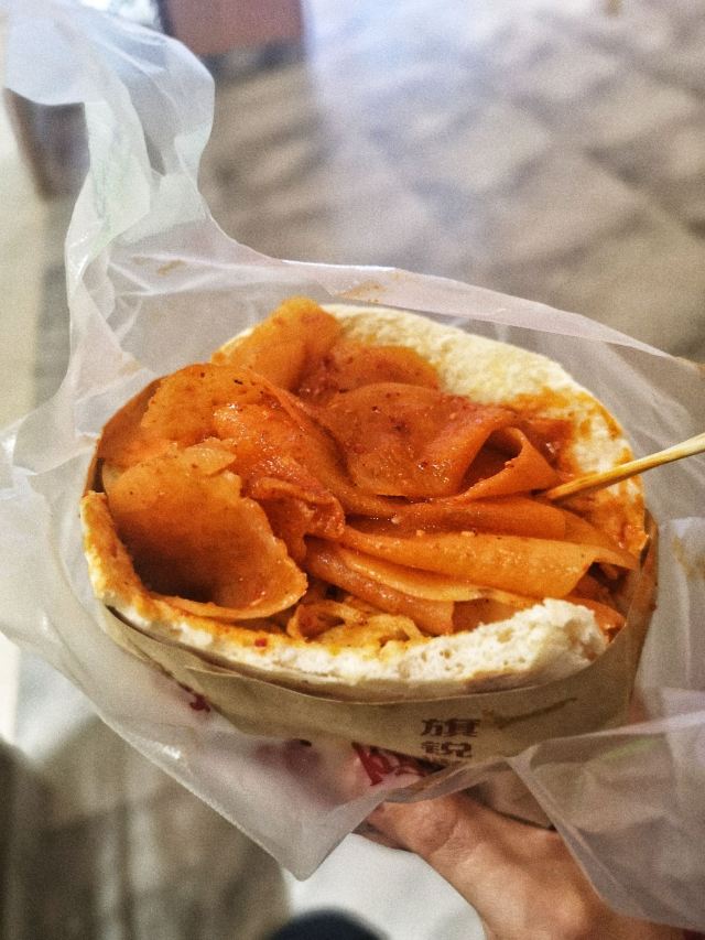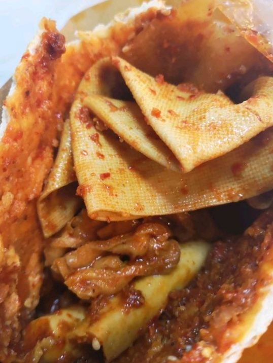 按头安利这家的土豆片加馍 甘肃的洋芋是出了名的好7而且咋做都阔以,这个加馍更是绝绝子 兰州有很多家门店,我来的这家是当时刚开没多久的国芳百货G层的这家,老板亲自坐镇,店面收拾的干净利索 服务热情周到 店里除了售卖土豆片加馍,还有甑糕,甑糕没有尝试,在我心里更属意西安的胖子甑糕,好几次都是飞去西安只为吃胖子 第一次吃就来个全家福吧,啥都阔以尝尝,有花干、豆干、鸡蛋、土豆片、鸡肉肠等,这些都是提前做好在锅里放着的,可以自选,饼也是现做的,方便快捷。 整体于我辣度有点高,我拒绝额外再加辣椒,除了豆干都很喜欢 当然,大饼加一切怎么都好7呀