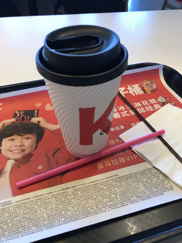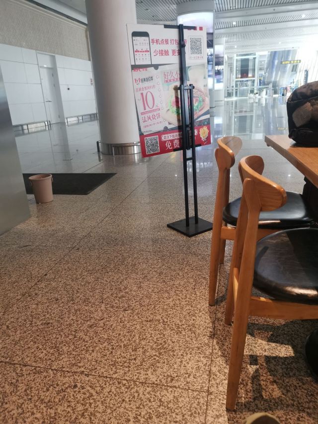 在银川机场离登机还有点时间,托运行李后看到有家肯德基,过了安检后里面就没有了,所以先来买杯咖啡,这家是半开放式的餐厅,现在都是扫码点单,人不多,所以挺快,机场店一般充电的地方会多一些,在这里吃点东西,休息一下,再去坐飞机,安检后里面餐厅其实不多