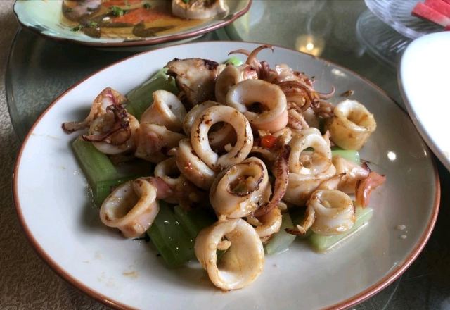 【环境】大排档,空间挺大,干净整洁 【服务】服务态度尚可 【口味】西芹鱿鱼筒:鱿鱼新鲜,味道不错,好吃! 卤肉茄子:伴饭吃,正!