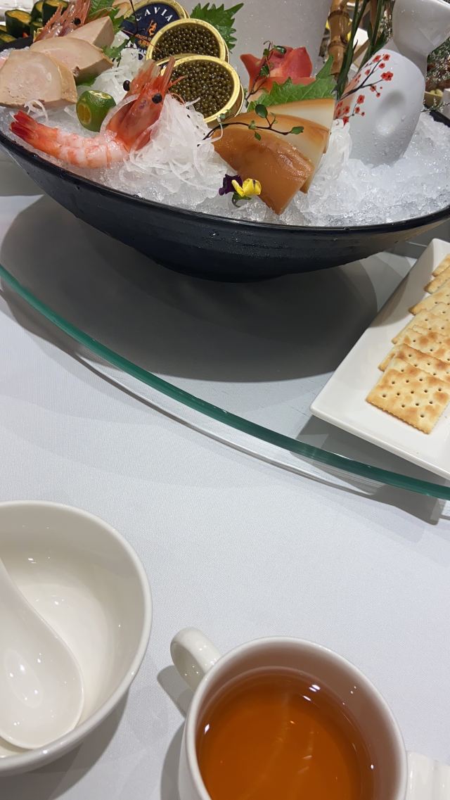 小榄地道鱼肉干蒸,海港盐焗鸡,乳鸽,焦糖黑醋小猪柳,一口虾饺皇,菊花包(炸),煎小榄糯米松糕,爽滑鲮鱼丸,香葱马蹄鱼茸角,脆皮甜薄餐,汤浸菜心,生炸妙龄鸽