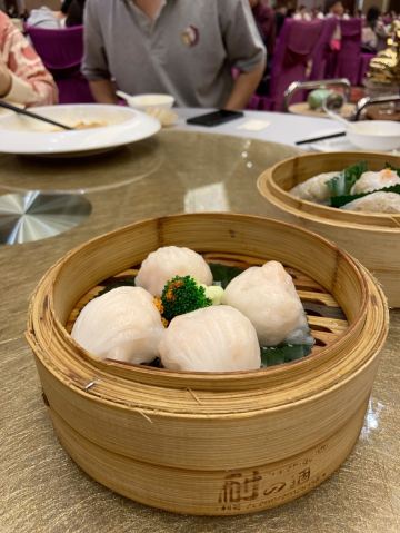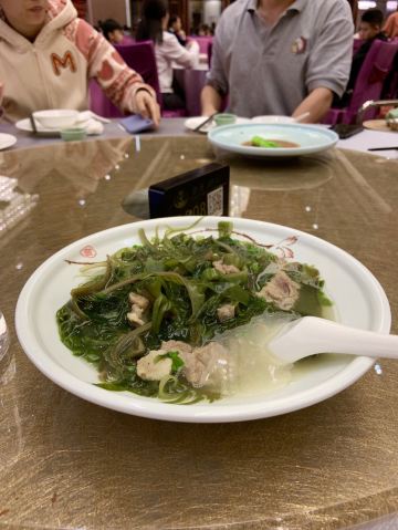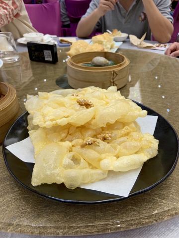 [薄荷]环境: 酒楼在利和广场内,旁边就是古镇高铁站,看样子可以延开百席,应该是附近比较高档的餐厅。 [服务铃]服务: 以为人品爆发抽中了一道花胶菜,结果告知要晚餐才能用,顿感坑爹…[发怒],希望商家奖点实际的。 「金汇虾饺皇」 「惹味金风栗子饺」不过不失,可以尝尝哈… 「琥珀果仁靓蛋散」已经不是很常有的点心,很怀念呀!非常松脆,轻轻一碰就碎一地啦… 「咸骨上汤浸海藻」「瑶柱金菇炆伊面」肉眼可见,出品一般般哈