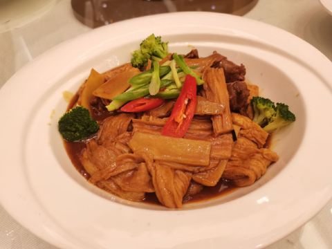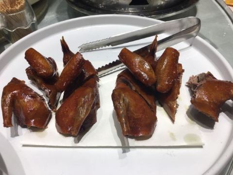 中山溫泉中餐廳的早茶非常有名,我今天介紹的是晚餐(點菜)的內容。烤鴨味道正,肉汁甜。油鷄是外皮Q彈,肉質鮮美,必須趁著冰的時候吃(退冰後會變的油膩)。揚州炒飯粒粒分明,配料味美。水煮牛肉不辣,肉質鮮嫩。 餐包裏面是包叉燒的,有肉汁,我個人是不習慣,其他人都說好吃。蛋撻是葡式蛋撻,外皮酥脆,層層疊疊,裏面綿密,必須趁熱吃(蛋撻涼了就不好吃)。