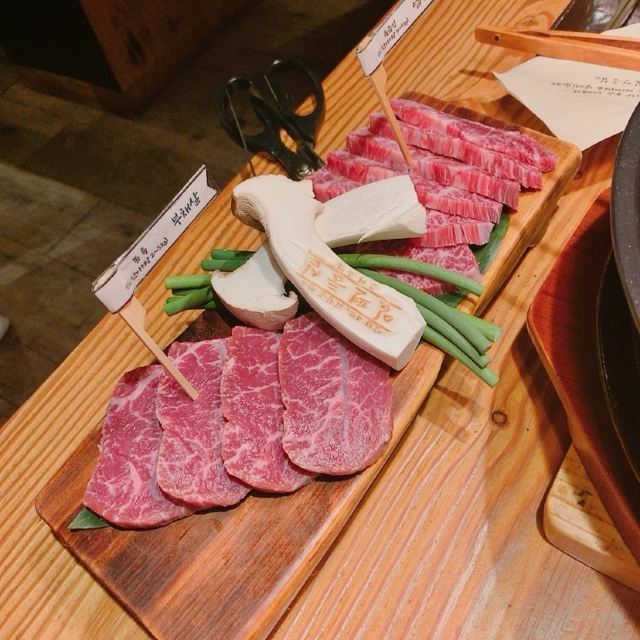 如果你想吃韩牛刚好你也来了弘大 请跟我来: 一片里脊 韩牛里脊肉 我对象是个嘴很叼的boy 他能说好吃的东西那肯定不错 必须真心❤推荐一下 全程有小哥哥小姐姐给你烤 还有刻着店名的杏鲍菇 肉很嫩!有种西餐既视感! 入口即化!油而不腻! 서울 마포구 홍익로6길 52 3층 ⏰营业时间: 12:00~23:00