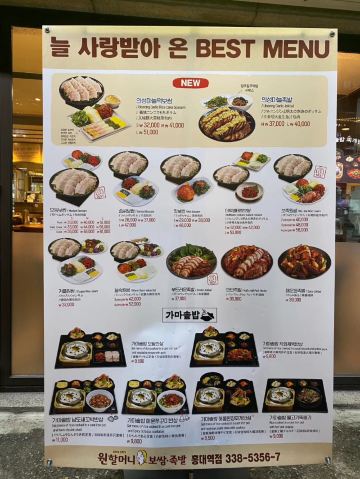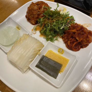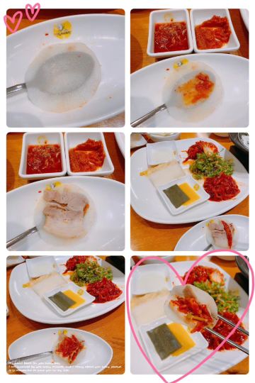 两人分小份。配菜有泡菜,辣萝卜,白菜之类的,那个绿色的片不知道是什么,有点像韩式芝士hh这家店的洋葱泡菜很惊艳,超级好吃,辣椒萝卜也很好吃,脆脆的,和湖南的辣椒萝卜感觉一样 肉上来后下面会有加热的,所以不用担心吃到一半肉就凉了,很贴心。我其实吃肉很怕肉味太重,会反胃,这家店的肉味刚刚好,不腥,很好吃 两人份大概3w韩币,折合rmb的话大概170,人均不到一百,性价比还是可以的。