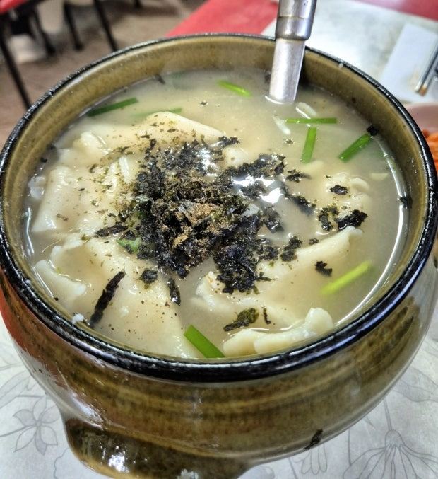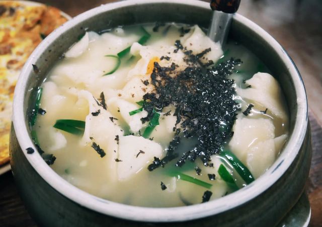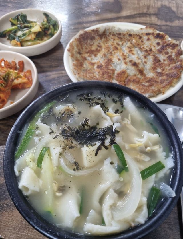 三清洞有名的小餐馆,用餐时间总是挤满了人。其实三清洞能发展成美食街,说起来还是三清洞面疙瘩的功劳。为这家小店慕名而来的人越来越多,聚集人气后其他餐馆也慢慢搬过来,才有了今天的三清洞。这家店的面疙瘩用小鱼熬制的鱼汤打底,放入面疙瘩和蛤蜊、马铃薯、南瓜、洋葱等材料,味道尤其鲜美。再配一份马铃薯煎饼、葱煎饼或绿豆煎饼,可以吃得很满足。