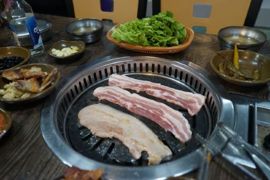 有机会一定要带朋友好友过来品尝,中午可以去吃烤肉,黑豚家可以说的上是物美价廉了。如果班机没有延误,到达济州,并且办理好入住的时间大概是早上10点15分前,所以去吃烤肉。