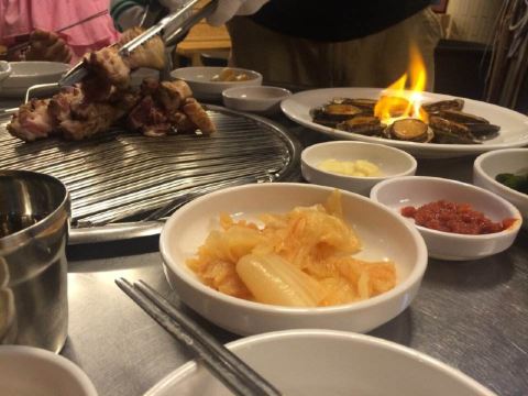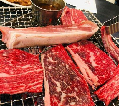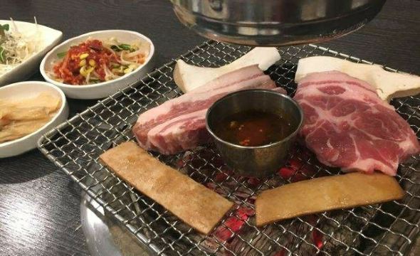 黑猪五花肉(흑돼지삼겹살),烤酱料猪肉(돼지양념구이),牛胸肉大酱汤(차돌된장찌개),酸泡菜汤(묵은지김치찌개),冷面(냉면),小菜(반찬),泡菜,韩国烤肉,酸泡菜汤,烤黑猪肉