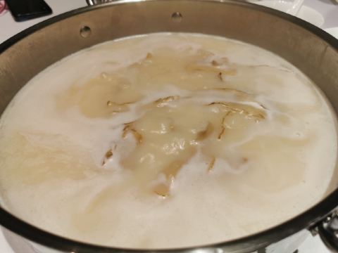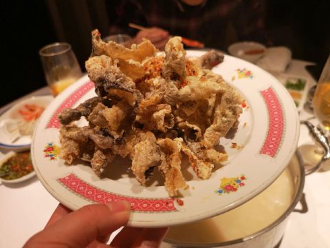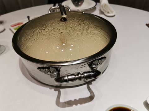 传说中火锅界的爱马仕,收藏许久,终于打卡。 【坐标】位于兴橙银座的一座独立小洋楼里,闹中取静。停车场有直达电梯到店里。 【环境】不起眼的独栋小洋楼,整体环境简约大气豪华又不失格调,二楼还有单独的衣柜 很贴心。 【服务】服务员全程都是带着白手套为我们服务,顿时感觉高大上。nice 很有耐心 基本烫涮全程不大自己动手,都是帮着烫熟夹在每人碗里;落座服务员送上养生润肺的竹蔗水和餐前水果。而且发现服务这么好,还没有服务费。 餐前每人面前上一份调料盘 每盘八种调料,可以自己调制蘸料也可以帮着调制;特别说下盘里的蒜是炸过的 很香很脆,吃在嘴里蒜味也不会太重。 单点价格略高,幸好最近有988团购套餐,不然真心一餐下来感觉肉疼的~这家火锅小吃吃人均小200,估计正儿八经吃,人均800~1000也是正常,毕竟菜品和服务品质 环境 一餐吃下来的感受,都是值得一去的,物有所值。 港式火锅是出了名的真材实料,用最新鲜的食材花心思煲一份营养汤底~而且最正确的吃法先喝汤再涮海鲜再喝汤。 【招牌松茸汤底】暖胃养生,感受原汁原味,香气四溢。 【精选牛肉粒】量不多,口感鲜香嫩 【精选牛肉】现切厨房,肉眼可见的新鲜,漂亮的大理石纹理,肥瘦相间,烫涮后口感有淡淡的奶香味,很嫩。 【斑节虾】还是蛮给力的,个大关键上桌的时候发现虾须还在动,下锅5分钟开吃,肉质Q弹细腻。 【比目鱼】端上桌店员就问生吃还是涮?在座各位都选择涮,不过我还是觉得生吃口感鲜嫩,涮过口感一般。 【炸腐皮】基本是港式火锅必备,店员烫涮前会提前问客人喜欢脆还是软,我喜欢滚汤里微涮2秒就可吃,此刻稍微浸泡整个卷饱含汤汁,口感外脆里软,而且不油腻。 【手打鲮鱼滑】第一次听说这种鱼,貌似鱼滑种加了马蹄,脆脆的 嫩滑鲜嫩,口感极佳。 【炸鱼皮】单点。48一份。喜欢香酥脆口感就直接吃,怕油腻也可放在火锅里涮下吸收汤汁精华,酥脆口感加上湿润的汤汁,貌似还蛮好吃。 【精选韭菜饺】现包,而且煮的时候发现饺子皮呈透明状,能看见内馅,很吸晴。皮薄馅多 味道好鲜 【天目湖大鱼头】128一份。其实是一整条鱼,鱼片厚薄均匀,现杀的鱼肉质饱满有弹性。 【饭后甜点】甜品品名颇有创意的写在一把古色古香的团扇上。 【杨枝甘露】酸酸甜甜 很清爽 【桂香鸡头米】时令养生甜品:软糯的鸡头米,非常新鲜。