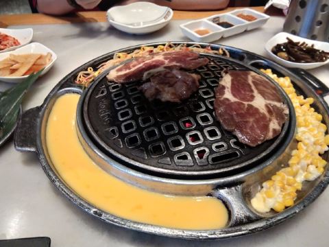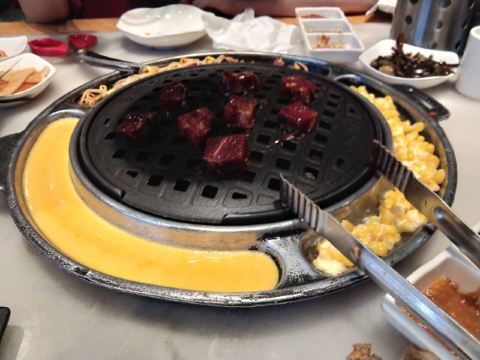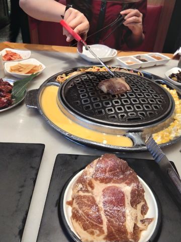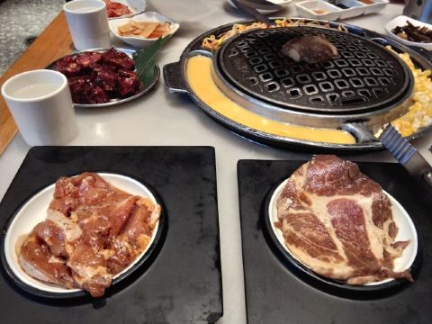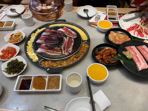 一家连锁的韩式碳火烤肉店,生意不错,肉品很多,牛肉,猪肉,五花肉等肉质很好,炭烤出来的肉品鲜嫩多汁,配上韩式酱料,非常不错!